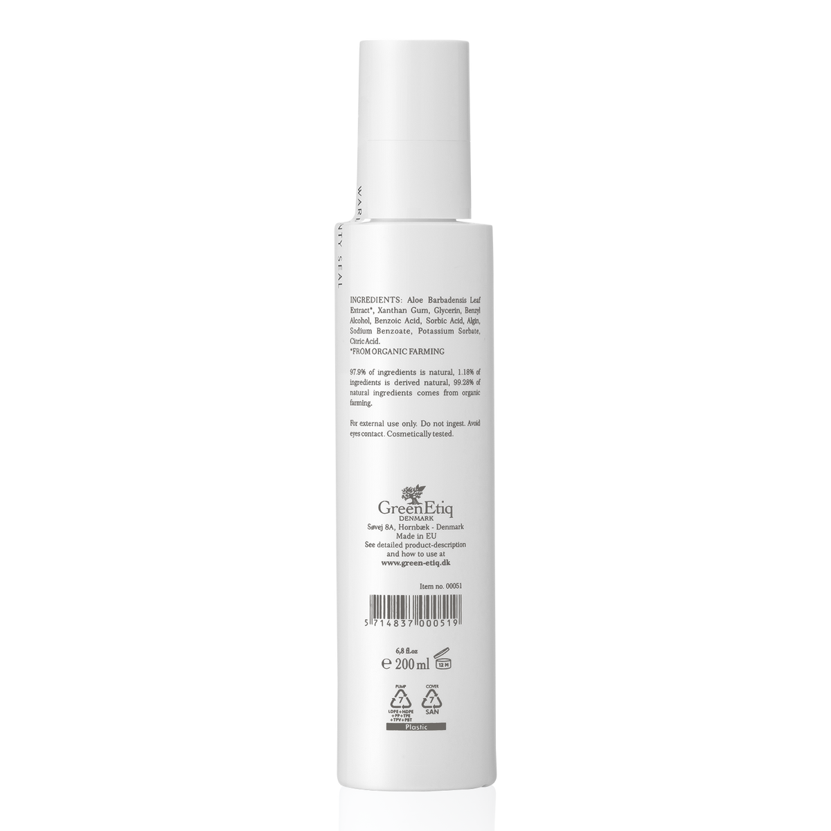 Her får du en super ren og effektiv Aloe Vera gel, 97,9% ren økologi, med en frisk duft, - en duft af høj kvalitets-AloeVera. Den er produceret med henblik på bedst mulig udnyttelse af alle dens egenskaber. Gelen ryger i produktion kort tid efter afskæring af blad på plante, for sikring af kvalitet. Al gel der ikke er helt klart kasseres, ligesom at der kun køres med kold-produktion for at sikre, at ingen aktiver ødelægges.