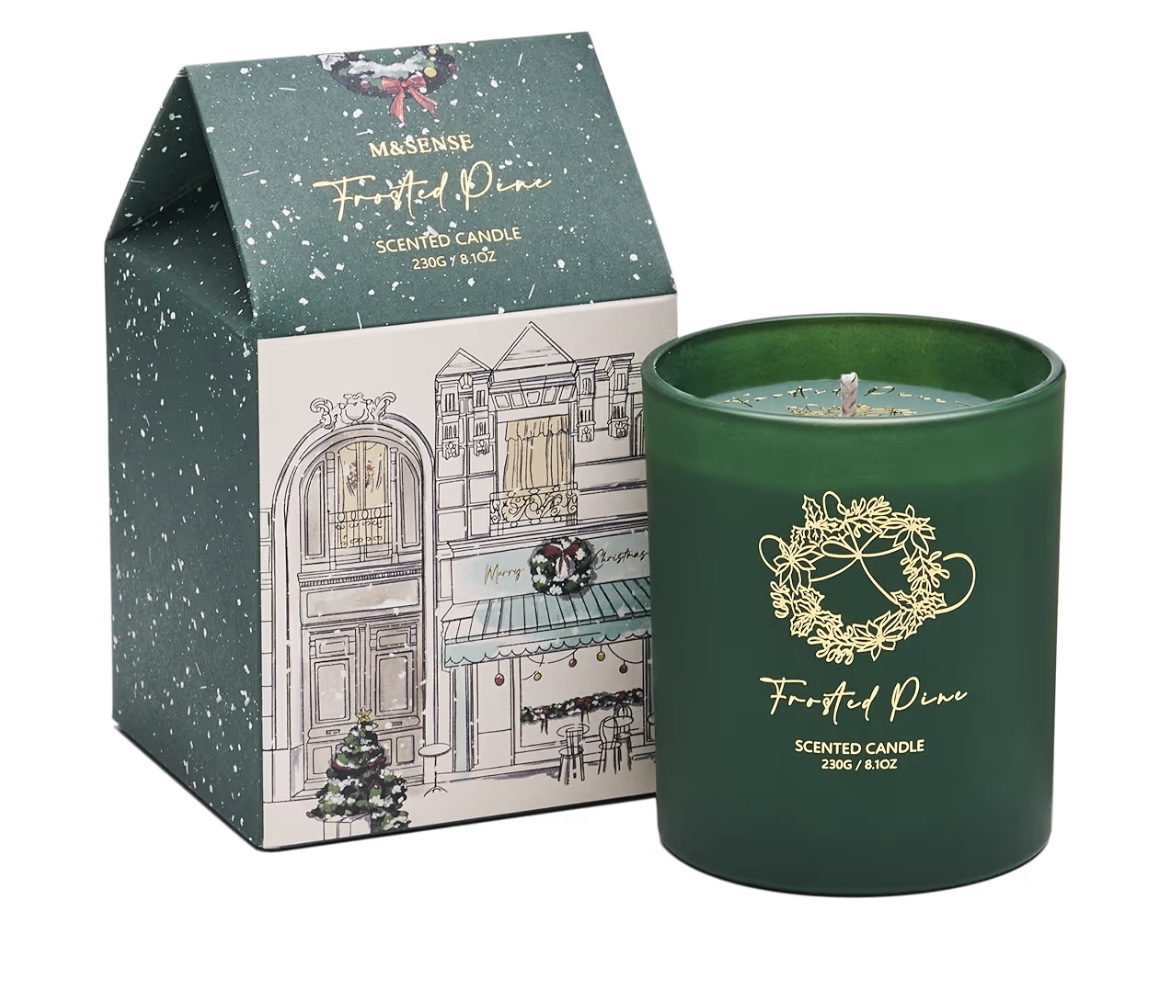 Fordyb dig i den hyggelige atmosfære med M&SENSEs 230 gram vokslys, fremstillet af naturlig soja og vegetabilsk voks for en ren, røgfri brænding.