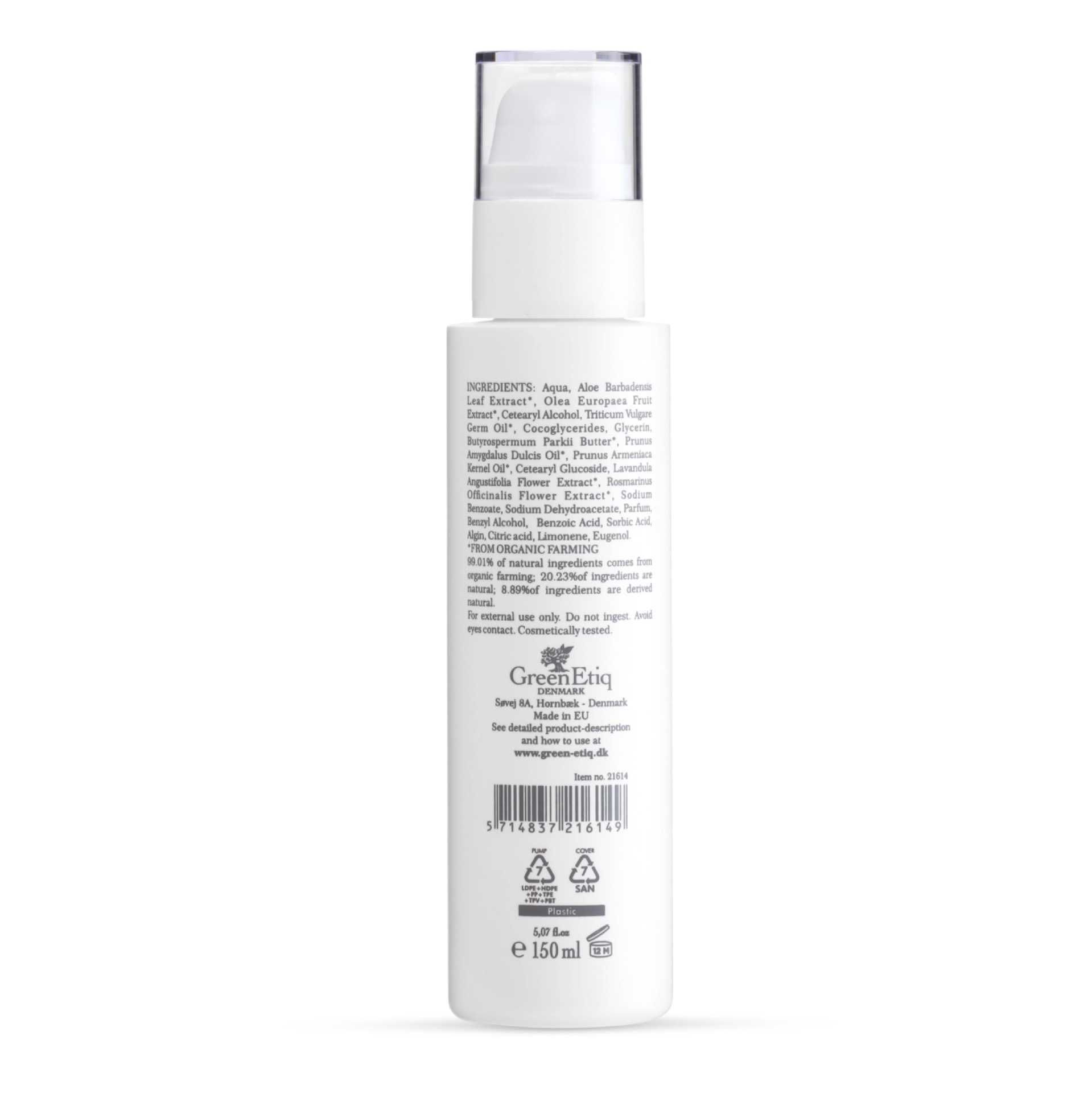 Fyldt med skønne økologiske råvarer såsom Mandel Olie, Lavendel blomst ekstrakt, Rosmarin blomst ekstrakt, Hvedekims Olie, SheaSmør, Aprikos Olie, Oliven Olie, AloeVera og andre naturlige samt økologiske ingredienser, -Vil denne Cleansing Milk effektivt men nænsomt rense hele dit ansigt, -både almindeligt snavs samt øjenmake-up, samtidig med at den beroliger huden og tilføjer en masse fugt og vitaminer.