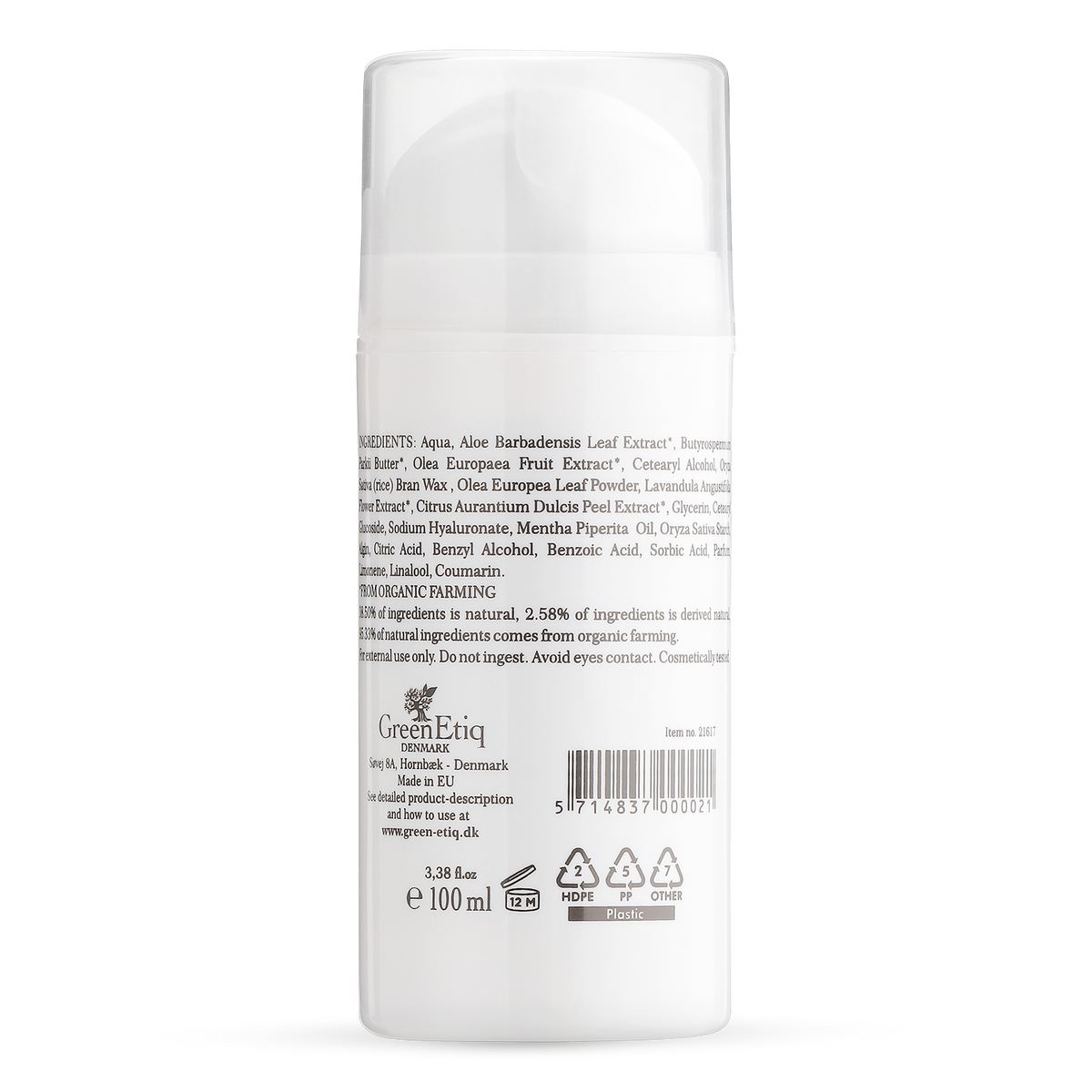 GreenEtiq´s skønne plejende og effektive ansigts-scrub, kan hurtigt skabe afhængighed, med dens effektive, men milde exfoliering samt fine pleje af din hud. Skrubben er sammensat af et væld af skønne ingredienser. Rispartikler og pulver af olivenblade har en delikat og effektiv eksfolierende virkning, som hjælper med at skrubbe huden fri for døde hudceller uden at irritere, og huden efterlades med en fin overflade, der gløder på ny.