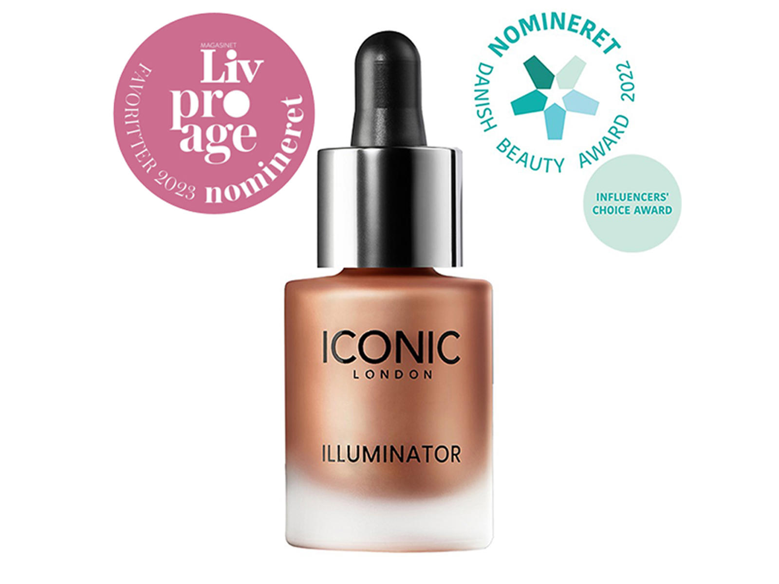 Sæsonens musthave-produkt, som alle, lige fra Khloe Kardashian til Jourdan Dunn, taler om. Boost din glød med disse fantastiske og veganske Illuminator-dråber fra ICONIC London. Disse koncentrerede glimmerdråber kan tilsættes til din foundation, primer eller fugtighedscreme eller blot bruges alene for at få en superlækker glød. Dråberne fås i 5 nuancer og kan også bruges til contour.